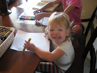 The girls had fun writing letters and drawing pictures for Grandpa and Grandma. Even Heidi had fun - look at that grin. Cute Heidi. Thank you Allie for helping Heidi learn to color. She loves to do just what you do. What great big sisters you both are.